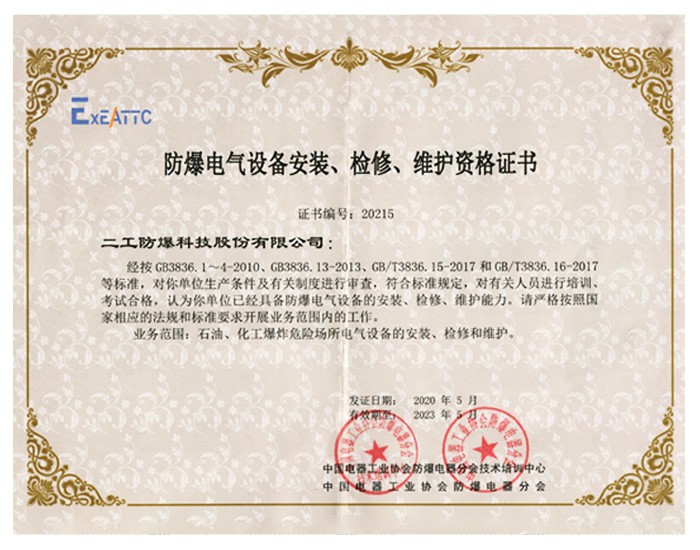 • 防爆設備安裝-檢修-維護資格..